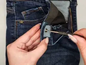 Вставьте заклёпочную часть с изнаночной стороны нового отверстия (той стороны, которая прилегала бы к коже при ношении джинсов).