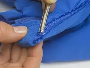 Сожмите стопор молнии с помощью пинцета.