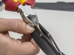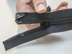 После того как вы отделите замок и переднюю планку от куртки, вам нужно отделить замок от передней планки. Теперь у вас должны быть обе стороны замка и передняя планка перед вами.