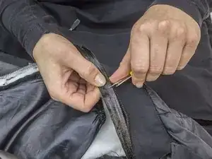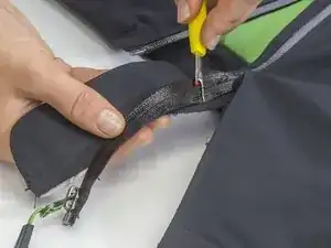 Отделите швы сломанного замка с помощью распарывателя швов. Лучше всего начинать с внешней стороны куртки.