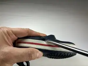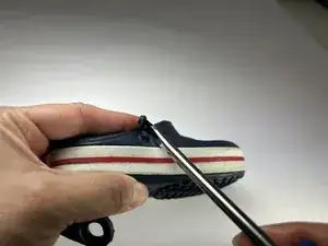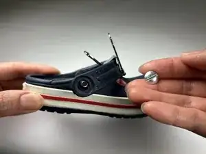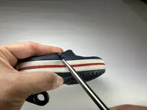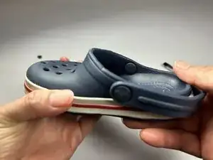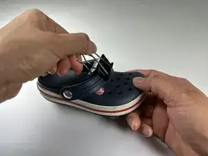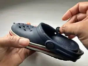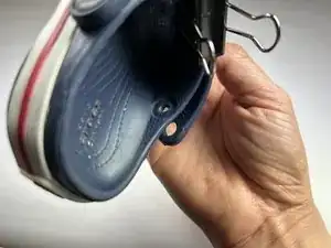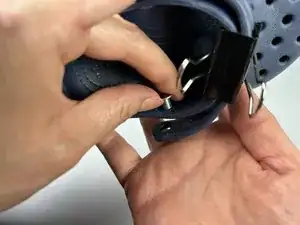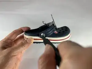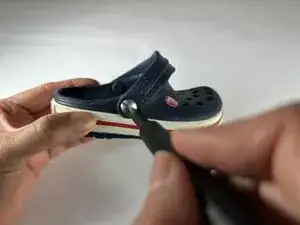 Удалите оставшуюся часть старой заклёпки изнутри Crocs руками.