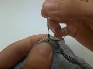 Начиная с одного угла дыры, введите иглу через край и выведите её с другой стороны.