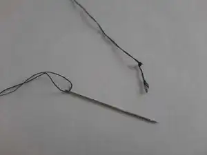 Проденьте нитку в ушко иглы и завяжите узел на конце.