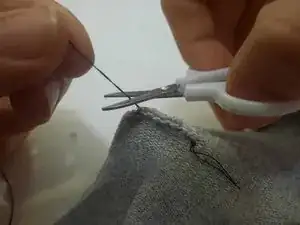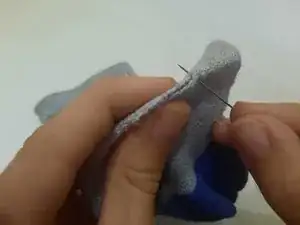 Отрежьте примерно 15 дюймов нитки подходящего по цвету к носку.