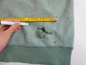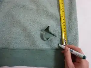 Перед разметкой новых размеров на ткани для заплатки убедитесь, что со всех сторон имеется зазор в четверть дюйма.