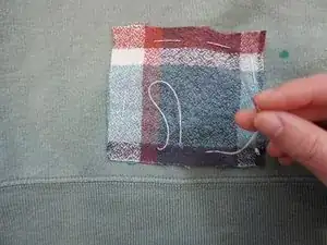 При необходимости подрежьте выступающие нити заплатки. У вас теперь обновлённая толстовка с прочной и аккуратно выполненной заплаткой!