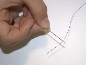 Проденьте один конец нитки в ушко иглы.