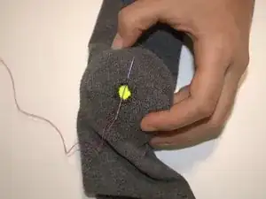 Вставьте теннисный мячик в носок так, чтобы он оказался на уровне дырки.