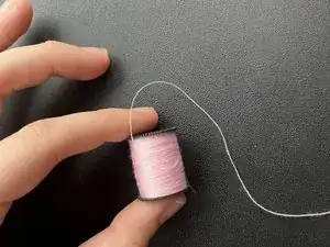Вденьте нить в иглу, пропустив ее через ушко иглы.