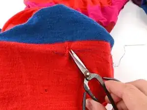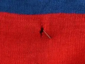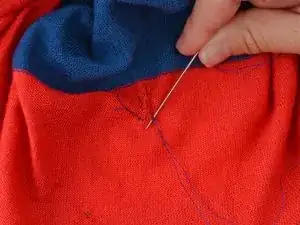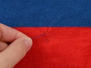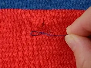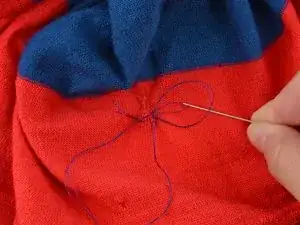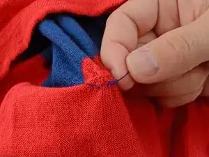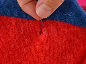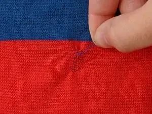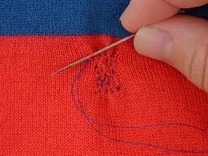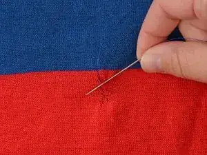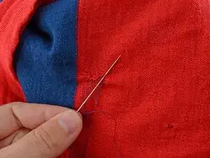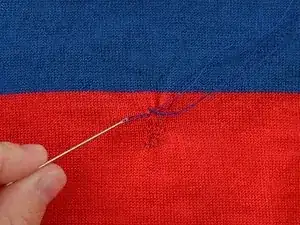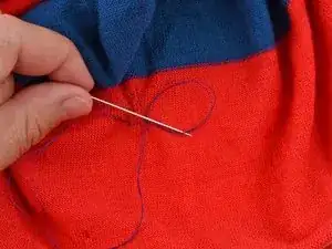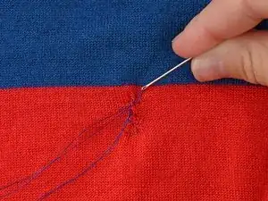 В нашем руководстве мы используем контрастную нитку, чтобы её было видно. Однако при ремонте выбирайте нитку по цвету ткани, чтобы шов был менее заметен.