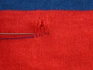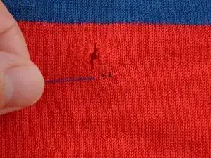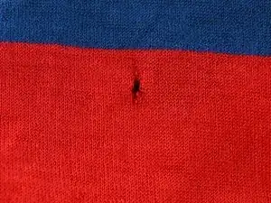 На этом изображении показано, как будет выглядеть штопка при использовании совпадающей по цвету нити.