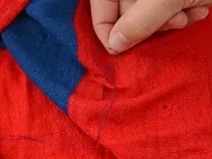Вытяните иглу пока нитка не натянется, но не собирайте и не стягивайте ткань.