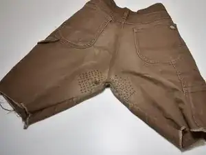 Найдите участок штанов, который нужно укрепить или заштопать.