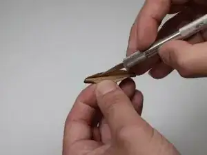 Сделайте ровный прямой разрез посередине заплаты ножом X-acto, чтобы заплата могла открываться с одной стороны.