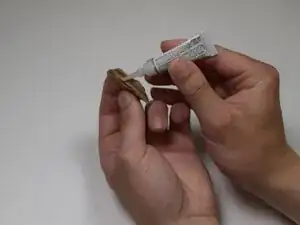 Нанесите суперклей на каждую сторону картонной заплаты.