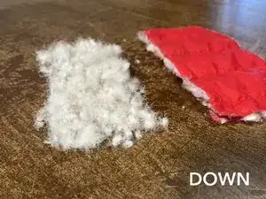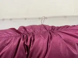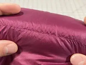 Пуховый утеплитель — Строчка критична для функциональности утеплителя, поскольку создаёт отдельные камеры (каналы), удерживающие перо. Зацепившиеся петли и перерезанные нити следует ремонтировать как можно скорее.