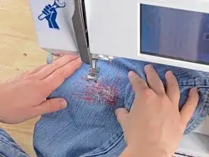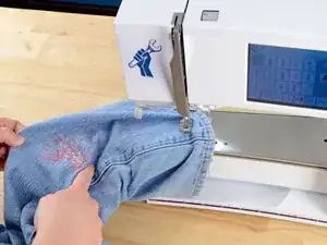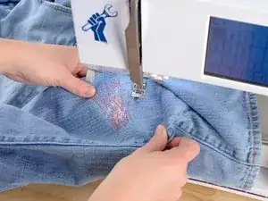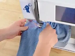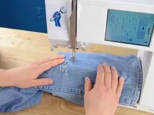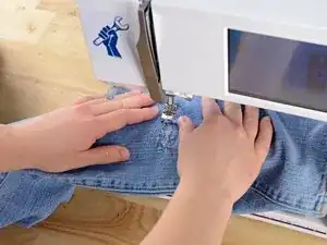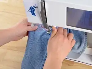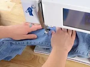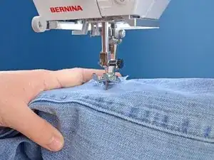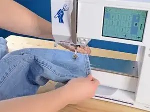 Убедитесь, что штанина вокруг рычага швейной машины. Если оба слоя сложены друг на друга, вы зашьете штанину.