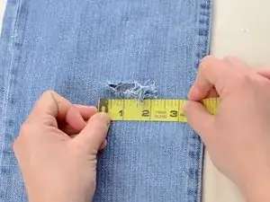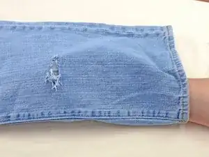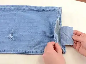 Вставьте прямоугольник ткани в штанину джинсов и разместите его под отверстием.