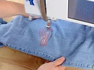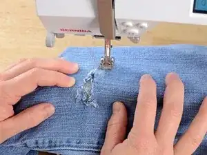 Активируйте функцию обратного стежка на вашей швейной машине и зашейте прямую линию обратно над отверстием, пройдя около пяти стежков за пределами повреждения.
