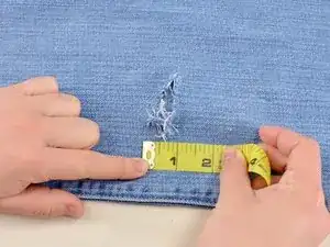 Осмотрите повреждение. Обрежьте любые длинные, свободные нити и удалите мусор из дыры.