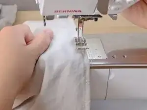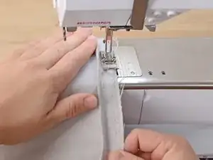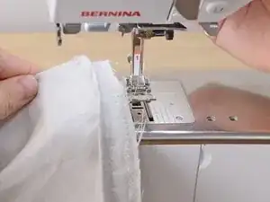 Вставьте свежеобрезанный край подгиба в швейную машину.