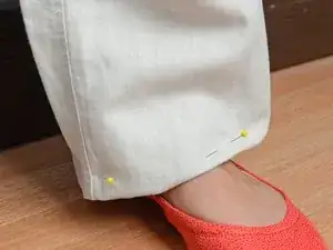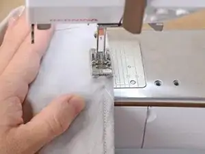 Убедитесь, что игла проходит через штанину только с одной стороны. Возможно, будет удобнее расположить штанину вокруг лапки швейной машины при снятом столе. Если вы прошьёте обе стороны, то зашьёте штанину полностью!