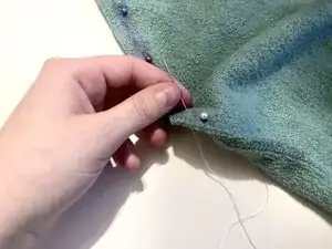 Совместите ткань с обеих сторон и сметайте её булавками, ровняя края.
