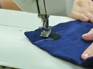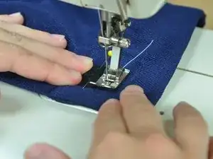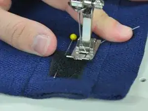 Разместите ткань под лапкой швейной машины в верхнем правом углу ленты «крючок-петля». Опустите лапку.