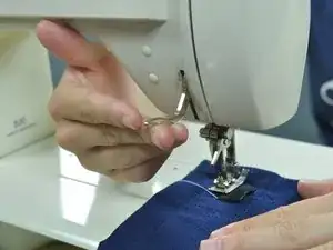 При вытягивании булавки убедитесь, что игла уже опущена. Если это не так, используйте маховик, чтобы опустить иглу в ткань.