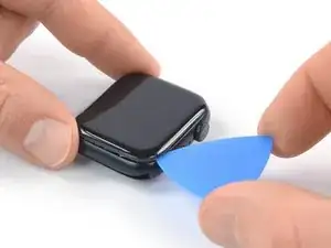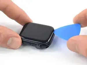 Вставьте iFlex в тонкий зазор между дисплеем и рамкой у кромки, прилегающей к цифровой коронке.