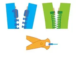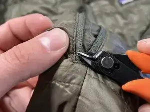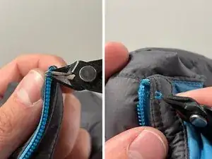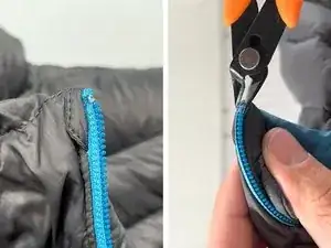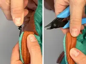 Техника - Удалите небольшое количество зубьев у основания молнии, чтобы создать место для повторной установки нового ползунка.