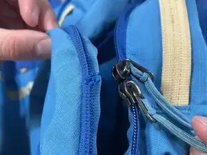 Передвиньте ползунок ниже повреждения и установите стопоры верхней петли с обеих сторон ленты молнии в зоне повреждения. Предупредите пользователя, что карман теперь не сможет полностью закрываться, прежде чем применять этот метод.