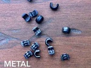 Металлические стопоры — металлические элементы в форме небольшой "с". Они зажимают участок тесьмы без зубцов на металлической или пластиковой молнии.
