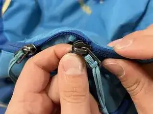 Используйте навык из шага 11, чтобы снова надеть оба ползунка на тесьму в месте повреждения.