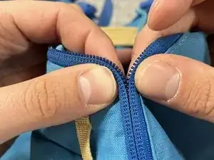 Используйте навыки из шагов 9 и 10, чтобы снова сцепить зубья молнии с обеих сторон повреждения.