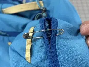 Используйте булавку через тесьму, чтобы фиксировать прогресс и не допускать повторного расхождения молнии (см. изображение №2).