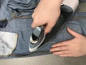 Поместите горячий утюг на ткань на 10 секунд. Продолжайте гладить, пока ткань не закрепится.
