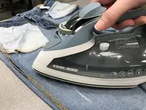 После того как ткань закреплена, выверните джинсы на лицевую сторону.