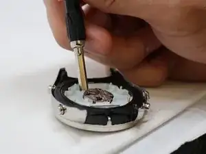 Будьте осторожны, чтобы не потерять этот винт — он важен для сборки часов обратно.