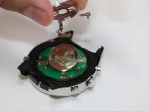 Извлеките большую круглую аналоговую батарею.