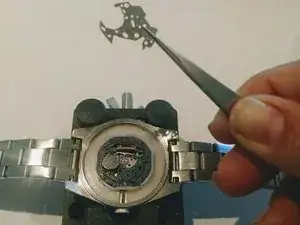 После выпрямления согнутого соединителя соберите часы заново, начиная со Шага 6 и продвигаясь обратно к Шагу 1.