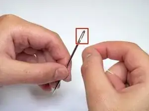 Снова удерживая ушко иглы большим и указательным пальцами, проколите верхнюю часть.