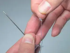 Вденьте нитку в ушко иглы и завяжите узел.