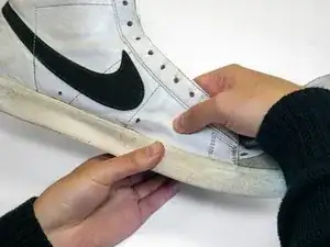 Плотно прижмите подошву и верх друг к другу вдоль соединительного шва.