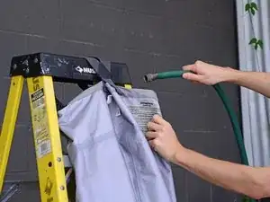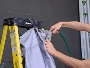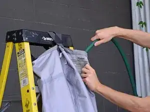 Следите внимательно, поскольку большое количество воды может опрокинуть лестницу. При необходимости утяжелите заднюю часть лестницы, чтобы предотвратить её падение.