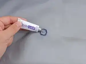 Нанесите каплю клея Seam Grip на отмеченный участок.