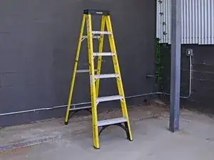 Установите лестницу на ровном месте снаружи, где можно не переживать за намокание.