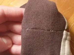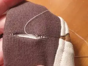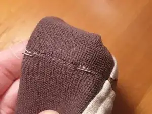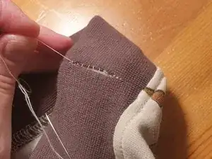 Щель закрыта, и нить больше не видна. Здесь видны только нитки целого шва по обе стороны. Как я уже сказал, мне следовало начать шить немного правее.
