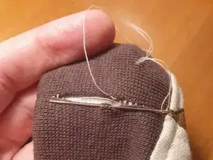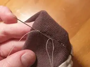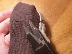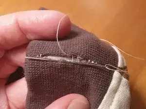 Выведите иглу, затяните нить и обрежьте конец. Лёгким потягиванием за ткань выведите последний кусочек нити между слоями ткани.