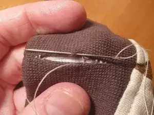 Утолкните конец нити внутрь отверстия, чтобы он больше не был виден.